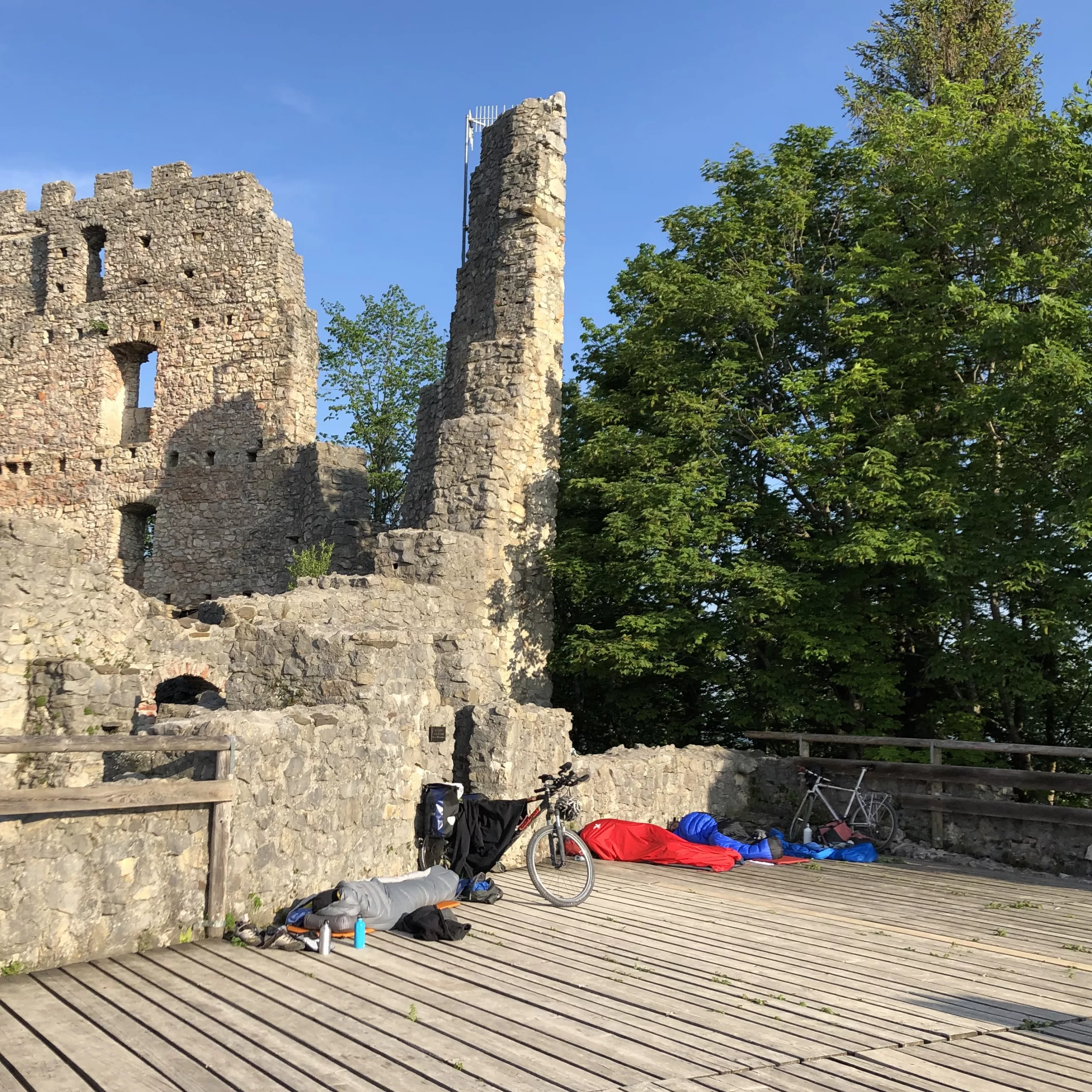 funny bike trip to the alps and back with some friends and best sleeping places